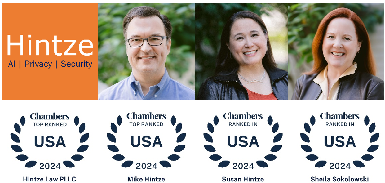 We’re pleased to share that Hintze Law and attorneys at the firm have been recognized once again by Chambers & Partners for expertise in a number of Privacy and Data Security areas in the 2024 Chambers USA Guide. These recognitions include Hintze Law’s fourth year being ranked as an Elite Law Firm for Privacy and Data Security – USA Nationwide. One of Hintze Law’s clients that Chambers interviewed shared that "Hintze's team has unique experience that allows them to dig into complex issues and provide practical, actionable advice."