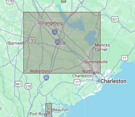 Looking at the list, it’s difficult to understand where the locations are, or how large they are. We had these coordinates mapped on Google Maps to show where the 736 government-related locations are. We’re lawyers, not cartographers, so it’s possible there are errors on this map. Still, looking at the map shows that some of these areas are very large. For example, consider location # 236, which covers a large area outside of Charleston South Carolina: